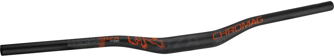 Der Chromag BZA Carbon Lenker mit 35 mm Oversize-Klemmung und 25 mm Rise besticht durch geringes Gewicht, Vibrationsdämpfung und höchste Verlässlichkeit im Downhill.