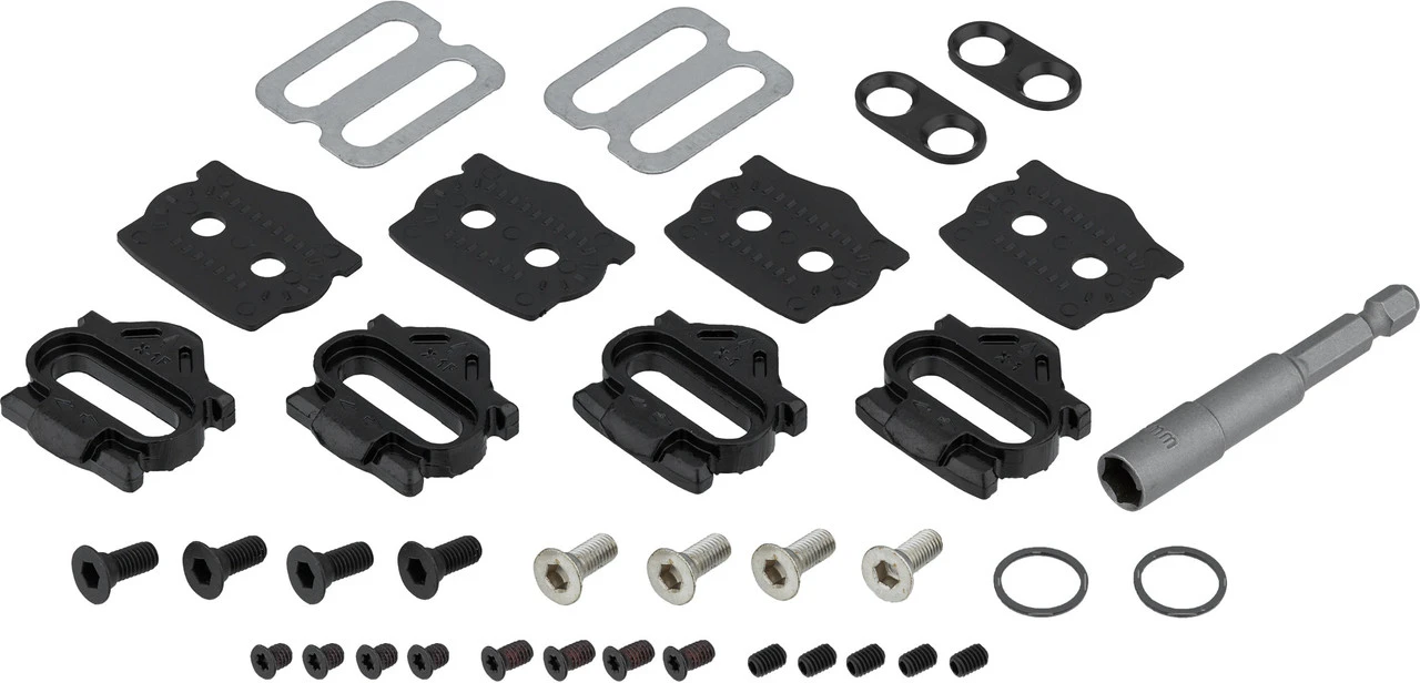 Lieferumfang:1 Paar Klickpedale HT DH RACE X31 Paar Cleats X1F1 Paar Cleats X14 x Distanzplatte Kunststoff2 x Distanzplatte Metall2 x Unterlegscheibe8 x Schraube lang8 x Schraube kurz2 x O-Ring5 x Ersatzpin1 x Sechskantschlüssel