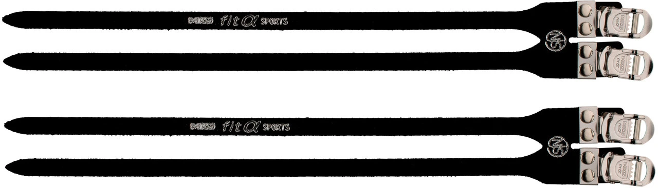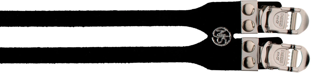 Die FIT Alpha Sports 2-buckle Pedalriemen von MKS sind für japanische Keirin-Rennen zugelassen (NJS-Zulassung). Riemen sind die klassische Variante, den Schuh fest mit dem Fahrradpedal zu verbinden. Dieses Modell aus Wildleder ist extra breit und mit doppeltem Riemen und zwei Schnellverschlüssen aus rostfreiem Stahl versehen. Die FIT Alpha Sports Pedalriemen können an vielen