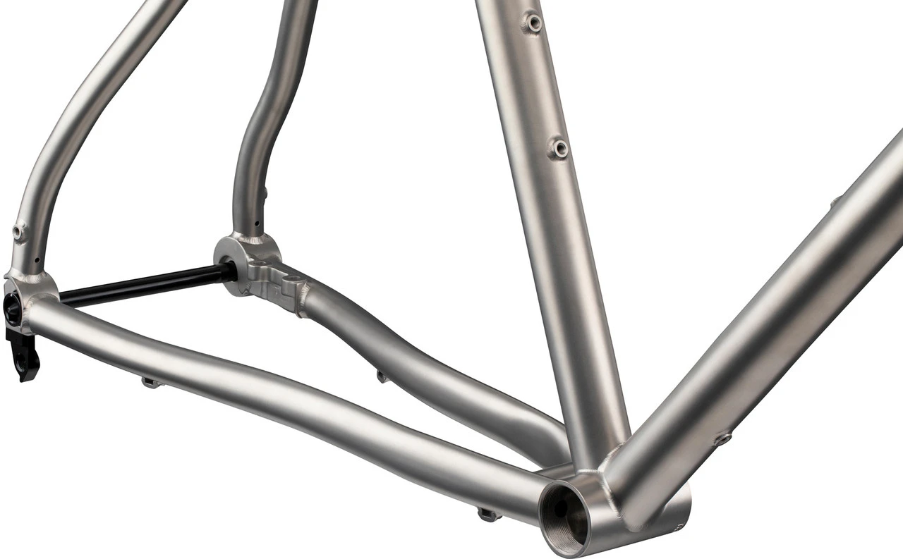 Spezifikationen:Einsatzbereich:GravelLaufradgröße:28″ , 27,5″Rahmengrößen:M, LMaterial:TitanTechnische Daten:Einbaubreite Hinterrad:142 mmAchsstandard:12 mm SteckachseSattelstütze (Ø):27,2 mmSattelklemme (Ø):31,8 mmSteuersatz:ZS44 – EC44 (oben zu unten)Gabelschaft empf.:1 1/8″ – 1,5″ taperedGabeleinbaulänge empf.:395 mmInnenlagerstand:BSAGehäusebreite:68 mmBremsaufnahme:Flat MountFlaschenhalteraufnahmen:2Freigaben:Gewichtsbeschränkung:100 kgBremsscheibengröße max.:160 mmReifengröße max.:650B x 62 mm / 700C x 42 mmKettenblattanzahl:1-fachKettenblattgröße max.:1-fach 40 ZähneGabeleinbaulänge max.:395 mmFeatures:CNC gefräste Flat Mount BremsaufnahmeGepäckträgerösen an den HinterbaustrebenunlackiertGeometrien:M: